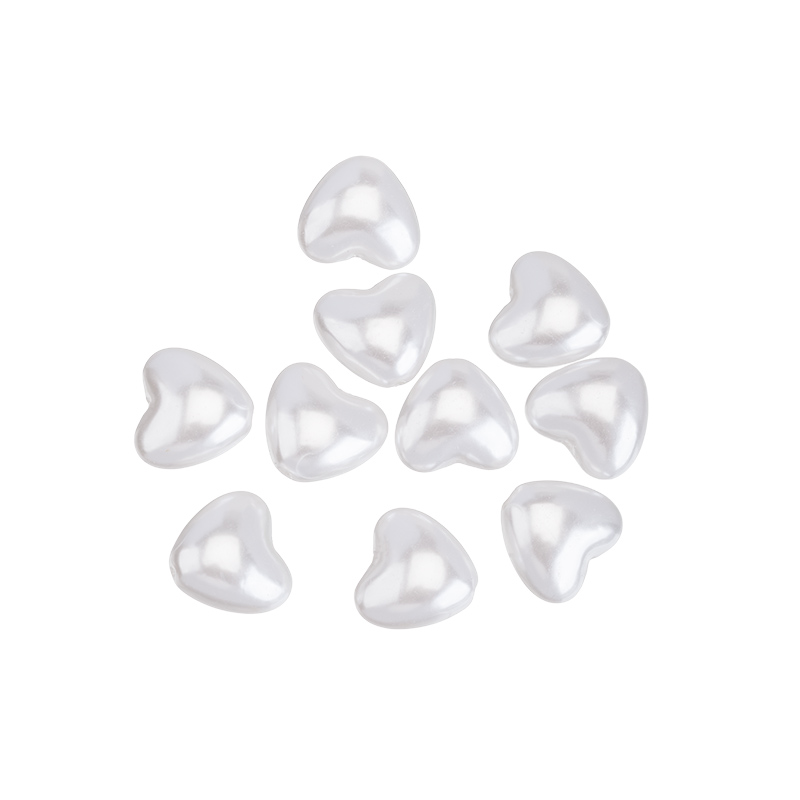 Бусины для рукоделия - жемчуг искусственный, в форме сердечка. Отверстие идет поперек бусины. Материал: пластик. Цвет: жемчужный белый. Размер: примерно 16 x 15 x 9 мм, диаметр отверстия: 1,2 мм. Производство: Китай. Цена указана за нить 10 штук.