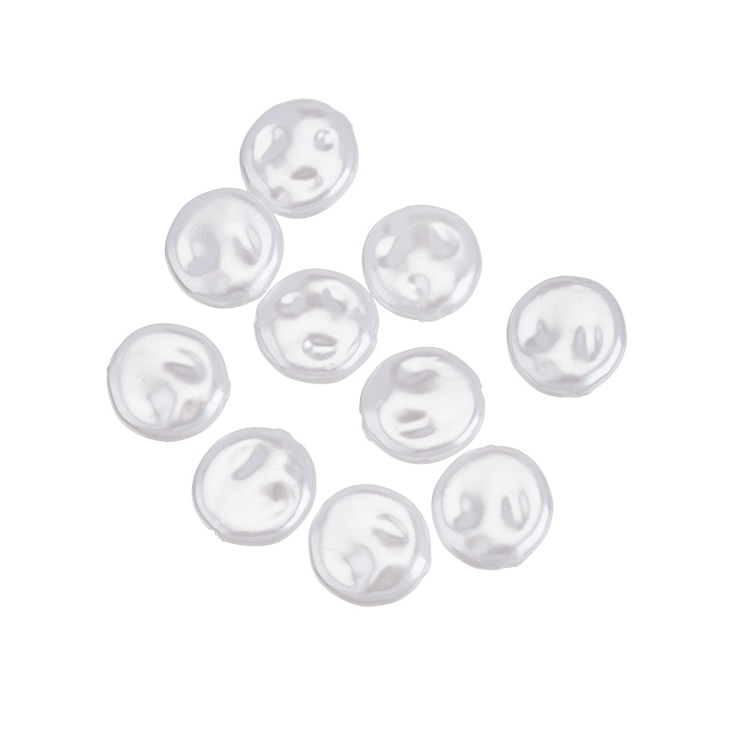 Бусины для рукоделия - жемчуг искусственный в форме таблетки. Материал: пластик. Цвет: жемчужный белый. Размер: 14 x 5 мм, диаметр отверстия: 1,2 мм. Производство: Китай. Цена указана за 10 штук.