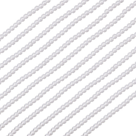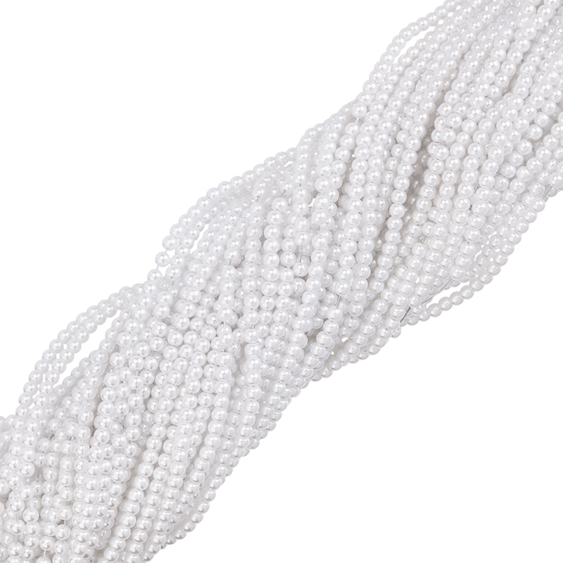 Бусины для рукоделия - жемчуг искусственный, круглой формы. Материал: пластик. Цвет: белый. Размер: примерно 3,5 x 4 мм, диаметр отверстия: 1,5 мм. Производство: Китай. Цена указана за нить (примерно 230 штук).
