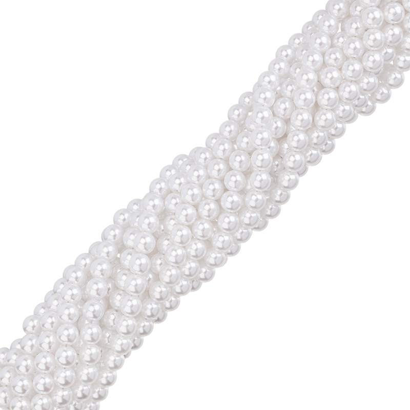Бусины для рукоделия - жемчуг искусственный, круглой формы. Материал: пластик. Цвет: белый. Размер: примерно 5,5 x 6 мм, диаметр отверстия: 1,5 мм. Производство: Китай. Цена указана за нить (примерно 180 штук).