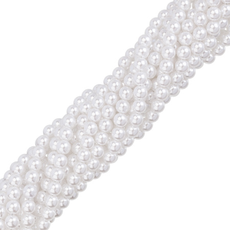 Бусины для рукоделия - жемчуг искусственный, круглой формы. Материал: пластик. Цвет: белый. Размер: примерно 7,5 x 8 мм, диаметр отверстия: 1,5 мм. Производство: Китай. Цена указана за нить (примерно 140 штук).