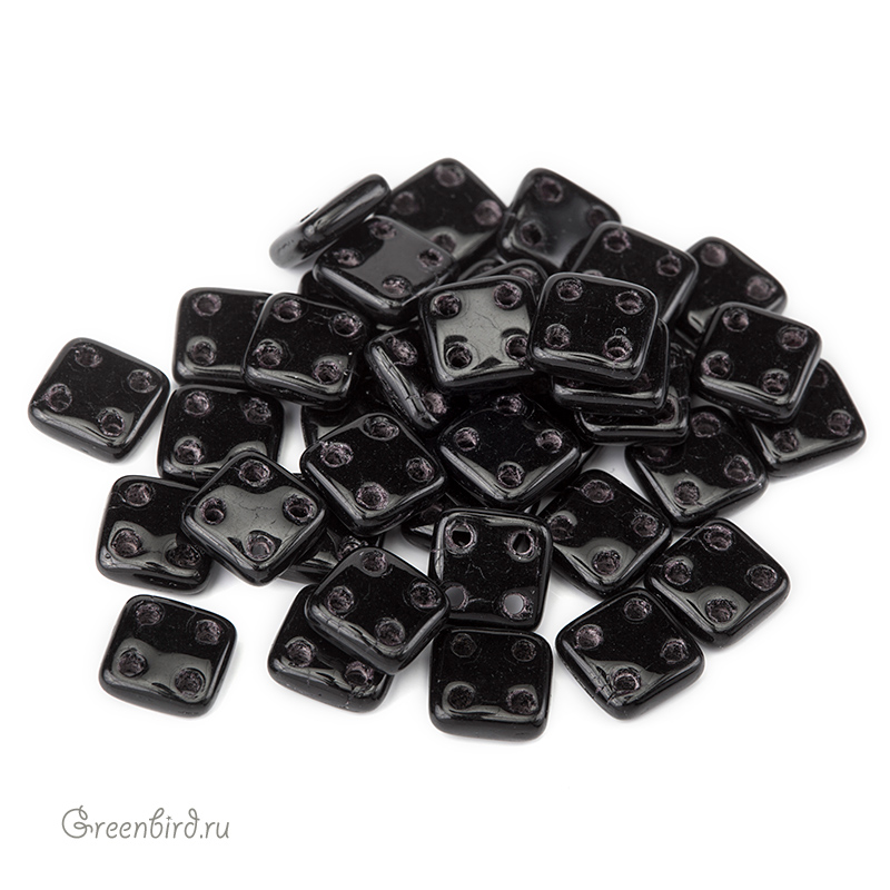 Бусины QuadraTile (стекло). Цвет: #23980 (черный). Размер: 6 мм, четыре отверстия: 1 мм. Производство: Чехия. Цена указана за 5 грамм (примерно 38 штук).