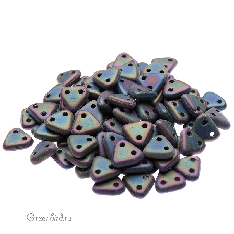 Бусины CzechMates Triangle (стекло). Цвет: #21155JT (матовый, зеленый/ирис). Размер: 6,27 x 6,25 мм, отверстие: 0,8 мм. Производство: Чехия. Цена указана за 10 грамм (примерно 90 штук).