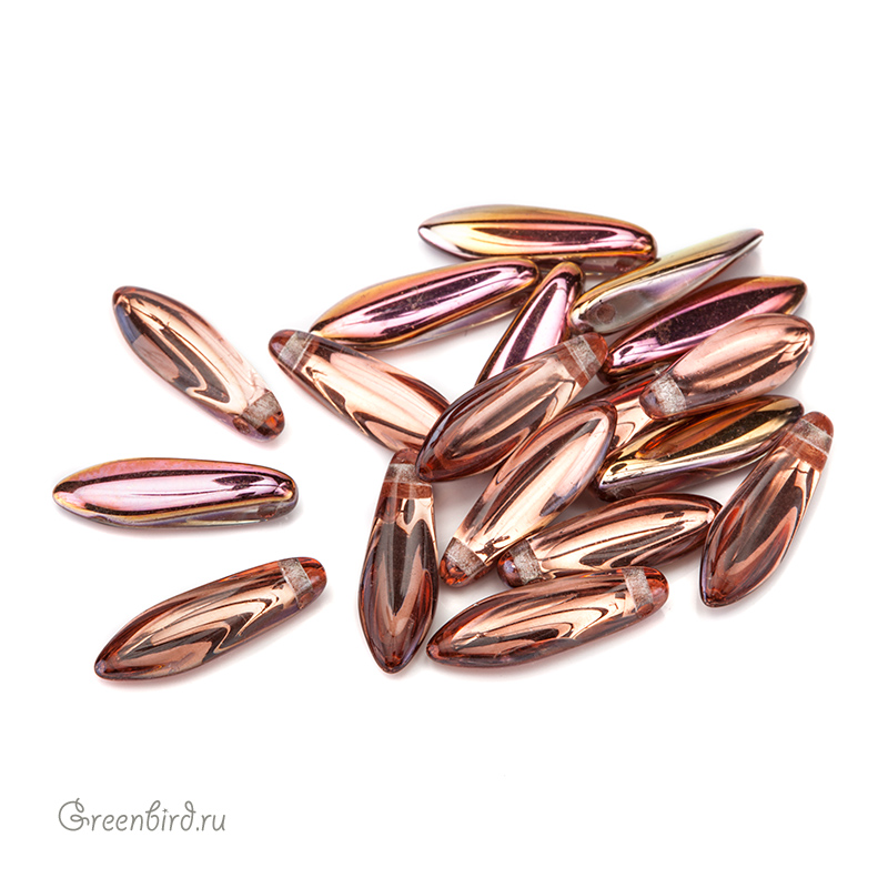 Бусины Glass Daggers (стекло). Цвет: #00030/27141 (хрусталь/розовый капри). Размер: 15,6 x 5 мм, отверстие: 0,8 мм. Производство: Чехия. Цена указана за 1 шт.