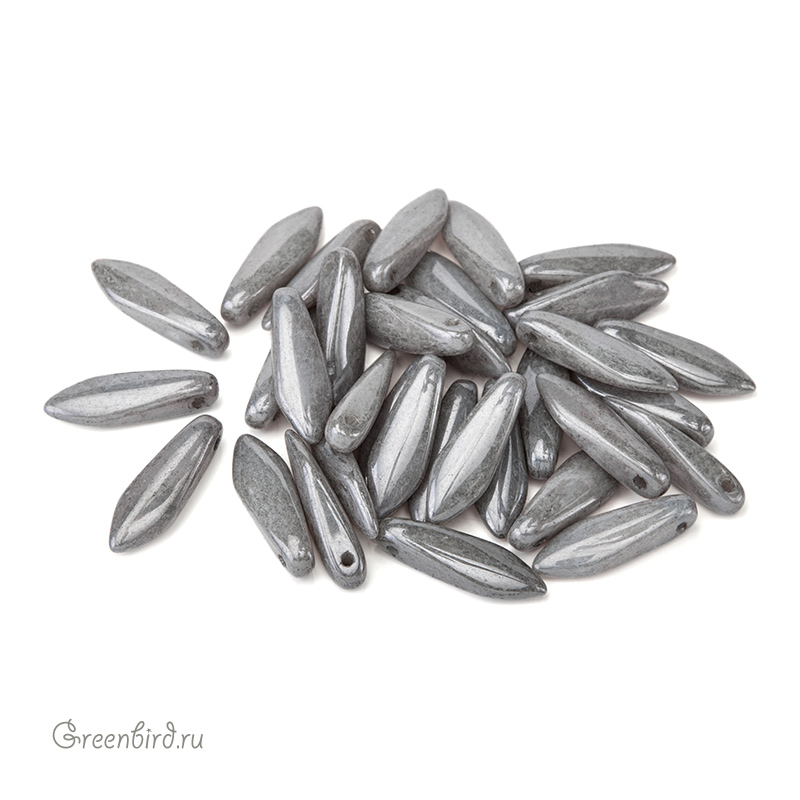 Бусины Glass Daggers (стекло). Цвет: #03000/14449 (глянцевый, белый мел/серый). Размер: 15,6 x 5 мм, отверстие: 0,8 мм. Производство: Чехия. Цена указана за 1 шт.