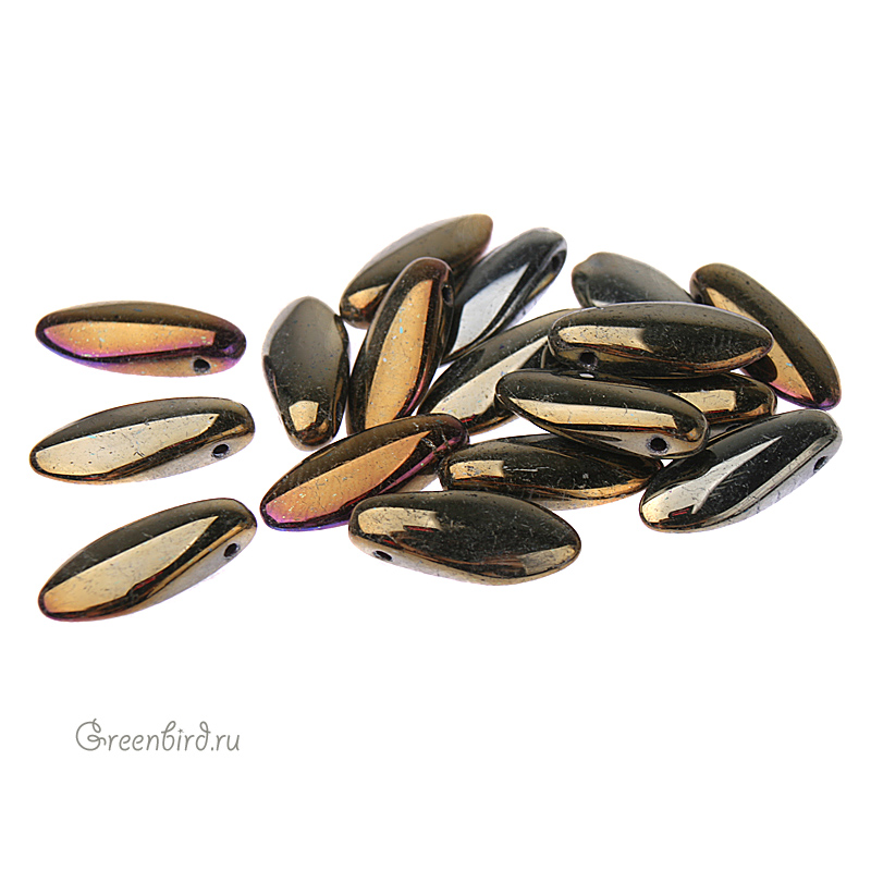 Бусины Glass Daggers (стекло). Цвет: #21415JT (ирис/коричневый). Размер: 12 x 5 мм, отверстие: 0,8 мм. Производство: Чехия. Цена указана за 1 шт.