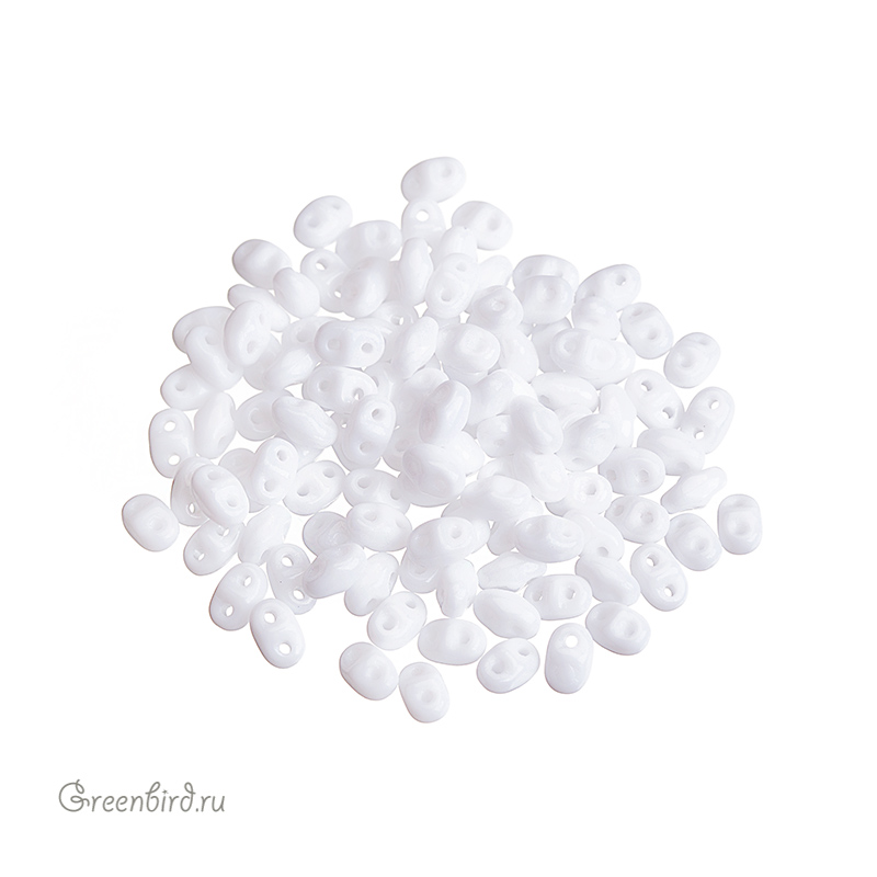 Бусины MiniDuo (стекло). Цвет: #03000 (белый, непрозрачный). Размер: 2,5 x 4 мм, отверстие: 0,7 мм. Производство: Чехия. Цена указана за 5 грамм (примерно 110 штук).