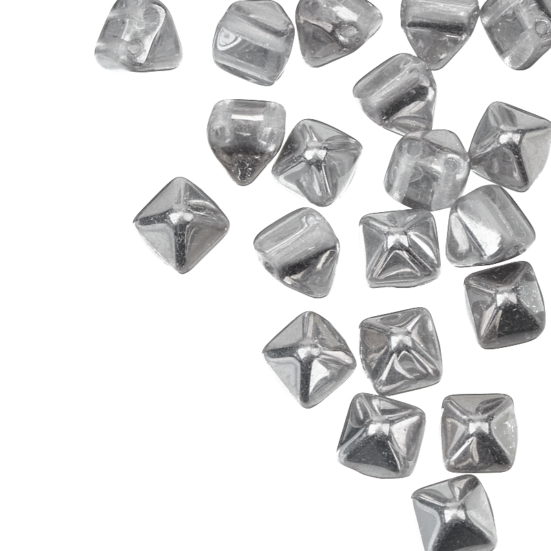 Pyramid Bead, бусины-пирамидки (стекло). Цвет: #S00030 (серебро/хрусталь). Размер: 6,2 x 6,3 х 6,6 мм, два отверстия: 0,7 мм. Производство: Чехия. Цена указана за 20 штук.