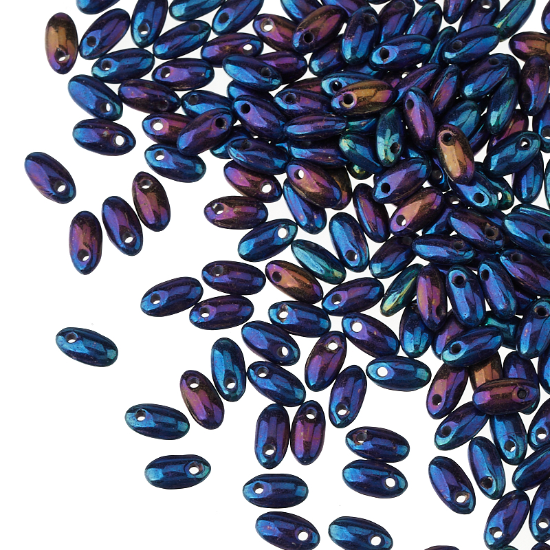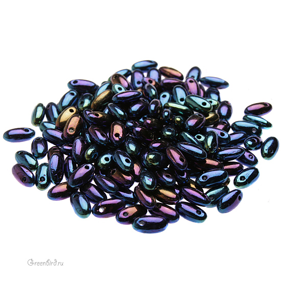 Бусины Rizo (стекло). Цвет: #21435JT (металлик, ирис/синий). Размер: 2,5 x 6 мм, отверстие: 0,8 мм. Производство: Чехия. Цена указана за 10 грамм (примерно 150 штук).