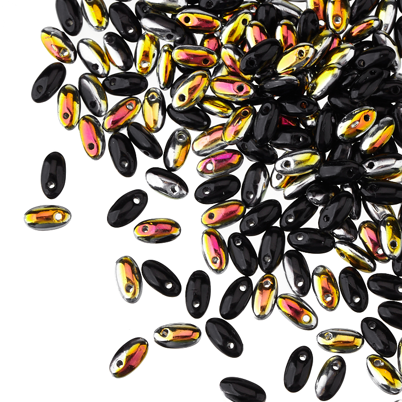 Бусины Rizo (стекло). Цвет: #MR23980 (черный/волны). Размер: 2,5 x 6 мм, отверстие: 0,8 мм. Производство: Чехия. Цена указана за 10 грамм (примерно 150 штук).