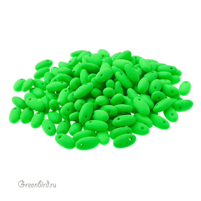 Бусины Rizo (стекло). Цвет: #25124AL (непрозрачный, салатовый неон). Размер: 2,5 x 6 мм, отверстие: 0,8 мм. Производство: Чехия. Цена указана за 10 грамм (примерно 150 штук).