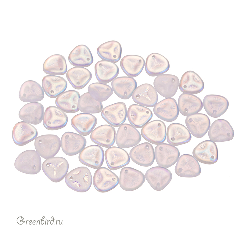 Бусины Rose Petals – лепестки розы (стекло). Цвет: #00030/28771 (матовый, хрусталь/радужный). Размер: 8 x 7,5 мм, отверстие: 0,8 мм. Производство: Чехия. Цена указана за 10 грамм (примерно 42 штуки).