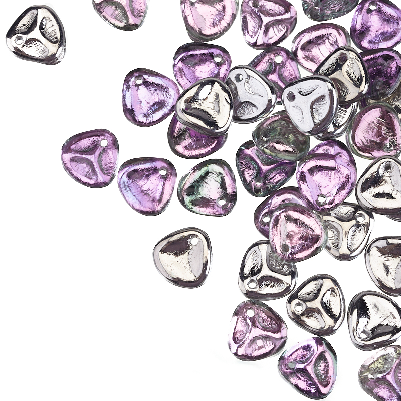 Бусины Rose Petals – лепестки розы (стекло). Цвет: #00030/26536 (серебристый, фиолетово-розовый). Размер: 8 x 7,5 мм, отверстие: 0,8 мм. Производство: Чехия. Цена указана за 10 грамм (примерно 42 штуки).