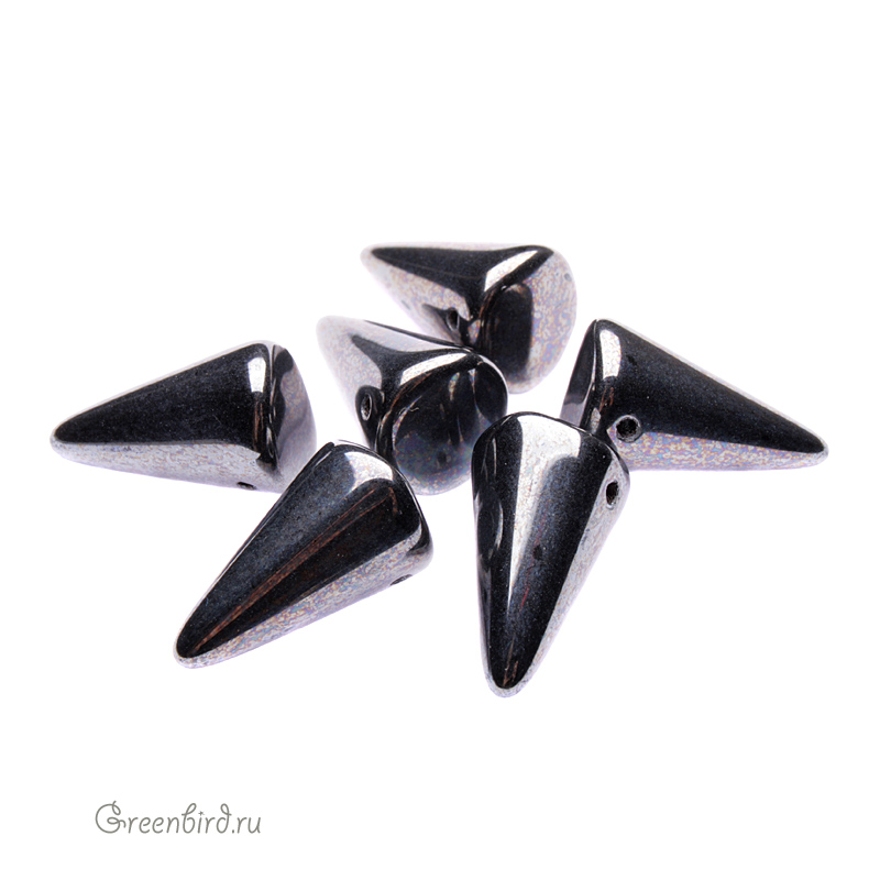 Бусины Spikes (стекло). Цвет: #L23980 (гематит). Размер: 12 x 18 мм, отверстие: 0,8 мм. Производство: Чехия. Цена указана за 10 грамм (примерно 6 штук).
