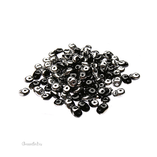 Бусины SuperDuo (стекло). Цвет: #S23980 (серебро/черный). Размер: 2,5 x 5 мм, отверстие: 0,8 мм. Производство: Чехия. Цена указана за 10 грамм (примерно 120 штук).