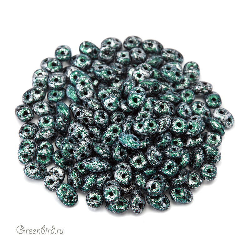 Бусины SuperDuo (стекло). Цвет: #45707JT (твид, зеленый). Размер: 2,5 x 5 мм, отверстие: 0,8 мм. Производство: Чехия. Цена указана за 10 грамм (примерно 120 штук).