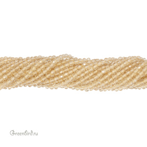 Бусины граненые Rondelle. Материал: стекло. Цвет: бледно-жёлтый (прозрачный). Без покрытия. Размер: от 1,9 х 2,0 до 2,1 х 2,2, отверстие: 0,4-0,5 мм. Цена указана за нить (примерно 170 штук).