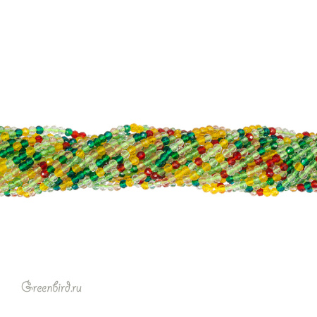 Бусины граненые Rondelle. Материал: стекло. Цвет: летний микс (прозрачный). В миксе используются цвета: жёлтый, зелёный, красный, прозрачный. Без покрытия. Размер: от 1,9 х 2,1 до 2,0 х 2,2, отверстие: 0,4-0,5 мм. Цена указана за нить (примерно 200 штук).