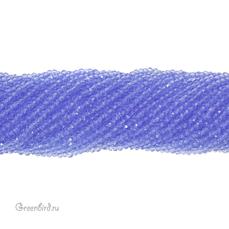 Бусины граненые Rondelle. Материал: стекло. Цвет: светлый сапфир. Размер: от 2,3 х 1,5 мм до 2,6 х 1,9 мм, отверстие: 0,5-0,6 мм. Цена указана за нить 31-32 см (примерно 130 штук).