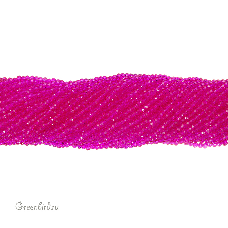 Бусины граненые Rondelle. Материал: стекло. Цвет: розовый неон. Размер: от 2,3 х 1,5 мм до 2,6 х 1,9 мм, отверстие: 0,5-0,6 мм. Цена указана за нить 31-32 см (примерно 130 штук).