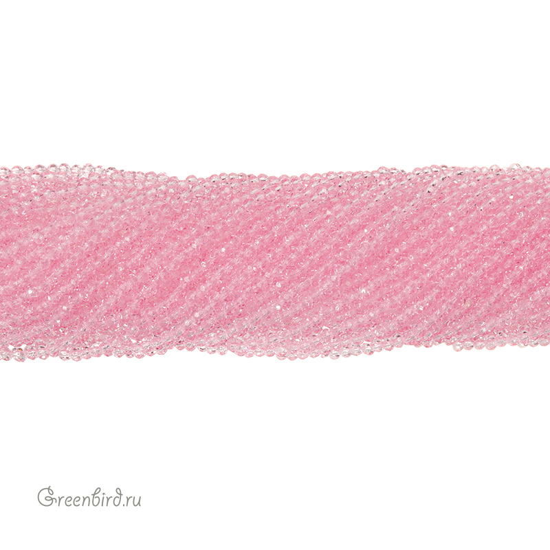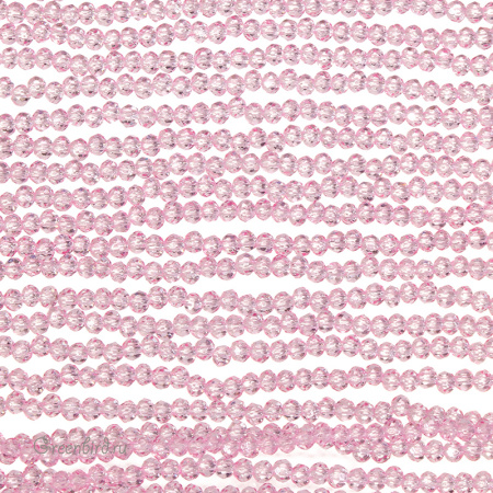 Бусины граненые Rondelle. Материал: стекло. Цвет: светлый розовый. Размер: от 2,3 х 1,5 мм до 2,6 х 1,9 мм, отверстие: 0,5-0,6 мм. Цена указана за нить 31-32 см (примерно 130 штук).