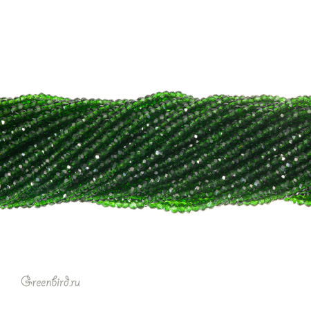 Бусины граненые Rondelle. Материал: стекло. Цвет: зеленый. Размер: от 2,3 х 1,5 мм до 2,6 х 1,9 мм, отверстие: 0,5-0,6 мм. Цена указана за нить 31-32 см (примерно 130 штук).