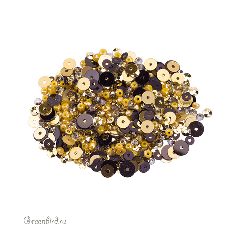 Фирменный микс граненых бусин ронделей и пайеток от GreenBird. Микс используется в декоративной вышивке, при создании украшений, идеален для работы в свободной технике.