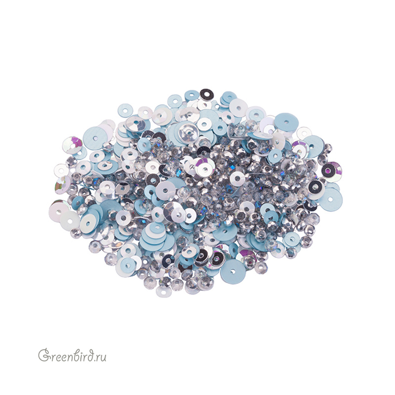 Фирменный микс граненых бусин ронделей и пайеток от GreenBird. Микс используется в декоративной вышивке, при создании украшений, идеален для работы в свободной технике.