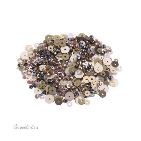 Фирменный микс граненых бусин ронделей и пайеток от GreenBird. Микс используется в декоративной вышивке, при создании украшений, идеален для работы в свободной технике.