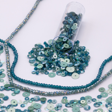 Фирменный микс граненых бусин ронделей и пайеток от GreenBird. Микс используется в декоративной вышивке, при создании украшений, идеален для работы в свободной технике.