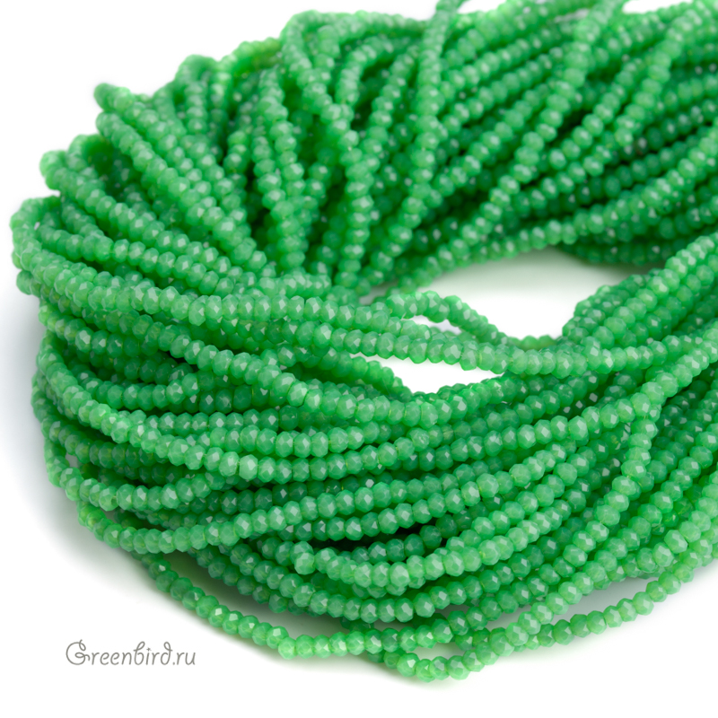 Бусины граненые Rondelle. Материал: стекло. Цвет: ярко-зеленый (полупрозрачный, дымчатый, на просвет имеет золотистый оттенок) с выраженным эффектом Fire Polished (отполированные бусины), без покрытия. Размер: от 2,3 х 1,4 мм до 2,5 х 1,6 мм, отверстие: 0,5-0,6 мм. Цена указана за нить (примерно 140 штук).