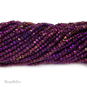Бусины граненые Rondelle. Материал: стекло. Покрытие: золотой / винный металлик (смешанное, полное, нанесено на бусину в различных пропорциях); допускается наличие бусин с частично стертым покрытием. Из-за особенностей покрытия бусины в каждой упаковке могут отличаться по цвету. Размер: от 2,3 х 1,7 мм до 2,5 х 1,9 мм, отверстие: 0,5-0,6 мм. Цена указана за нить (примерно 140 штук).