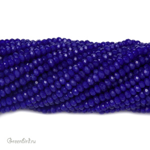 Бусины граненые Rondelle. Материал: стекло. Цвет: индиго (полупрозрачный) с легким эффектом Fire Polished (отполированные бусины), без покрытия. Размер: от 2,4 х 1,5 мм до 2,5 х 1,8 мм, отверстие: 0,5-0,6 мм. Цена указана за нить (примерно 140 штук).