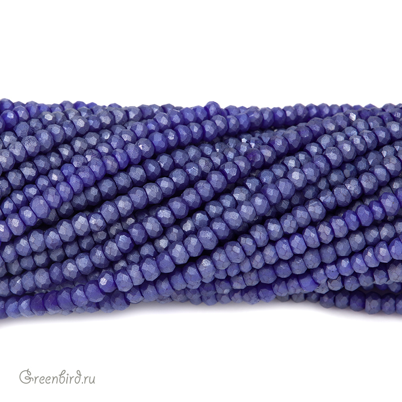 Бусины граненые Rondelle. Материал: стекло. Цвет: синий (полупрозрачный), покрытие: серебристо-синий матовый металлик. Размер: от 2,3 х 1,6 мм до 2,5 х 1,7 мм, отверстие: 0,5-0,6 мм. Цена указана за нить (примерно 130 штук).