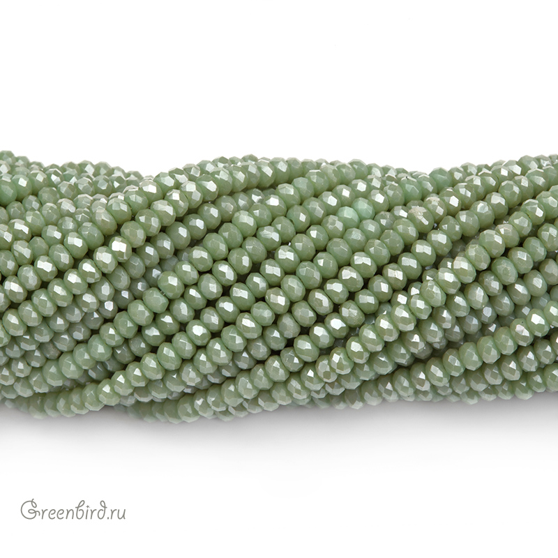 Бусины граненые Rondelle. Материал: стекло. Цвет: темный нефрит (непрозрачный) с эффектом Fire Polished (отполированные бусины, легкий зеркальный эффект). Размер: от 2,4 х 1,5 мм до 2,6 х 1,6 мм, отверстие: 0,5-0,6 мм. Цена указана за нить (примерно 150 штук).