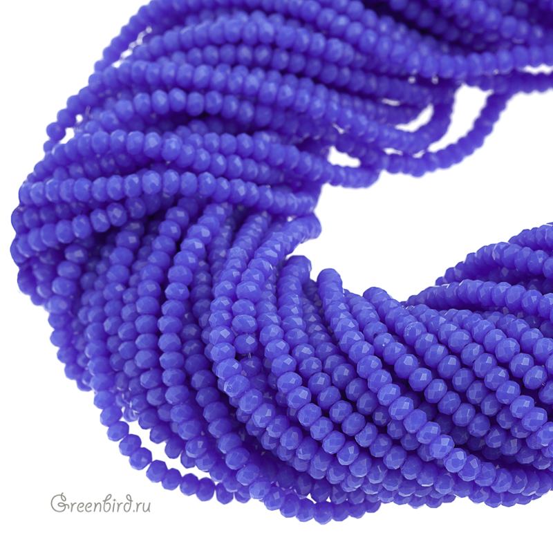 Бусины граненые Rondelle. Материал: стекло. Цвет: синий (непрозрачный) с легким эффектом Fire Polished (отполированные бусины), без покрытия. Размер: от 2,9 х 1,9 мм до 3,1 х 2,3 мм, отверстие: 0,5-0,6 мм. Цена указана за нить (примерно 175 штук).