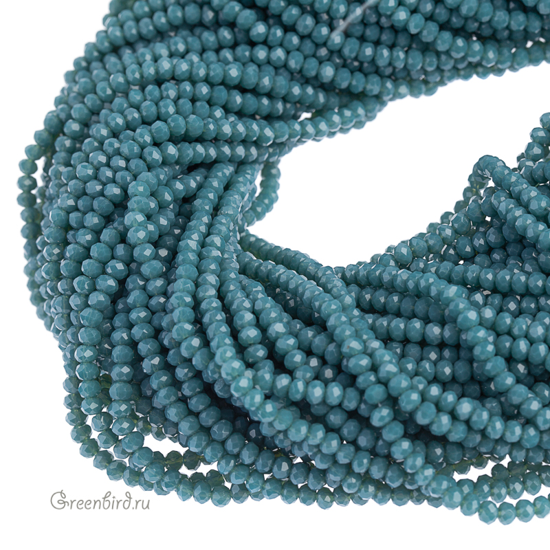 Бусины граненые Rondelle. Материал: стекло. Цвет: зеленый жадеит (полупрозрачный, дымчатый, на просвет золотисто-зеленый) с легким эффектом Fire Polished (отполированные бусины), без покрытия. Размер: от 3,3 х 2,4 мм до 3,6 х 2,6 мм, отверстие: 0,5-0,6 мм. Цена указана за нить (примерно 145 штук).