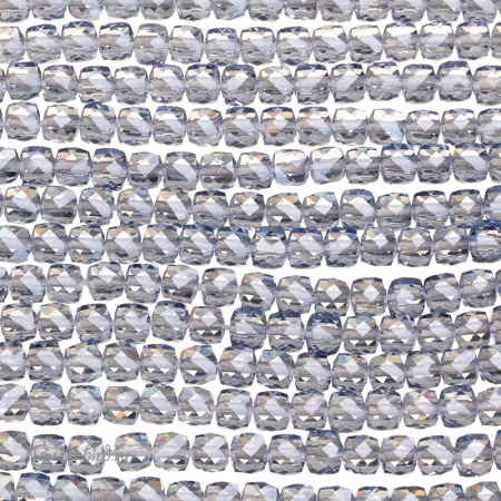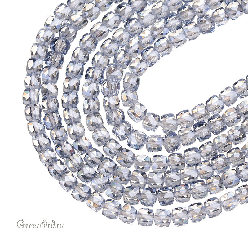 Бусины граненые в форме куба. Материал: стекло, цвет: Misty Blue (прозрачный серо-синий). Размер: 5 х 5 мм, диаметр отверстия: 1,2 мм. Производство: Китай. Цена указана за нить 39-40 см (примерно 86 штук).