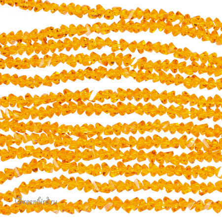 Бусины граненые абстрактной формы, похожие на крошку. Материал: стекло, цвет: оранжевый (прозрачный). Размер: 2,5 х 3,5 мм, диаметр отверстия: 1 мм. Производство: Китай. Цена указана за нить 32-34 см (примерно 140 штук).