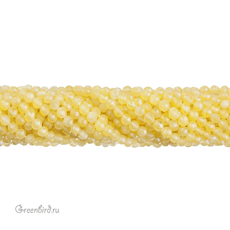 Бусины граненые круглые. Материал: стекло, цвет: Yellow (прозрачно-желтые). Размер: 4 х 4 мм, диаметр отверстия: 1 мм. Производство: Китай. Цена указана за нить (90-93 штуки).