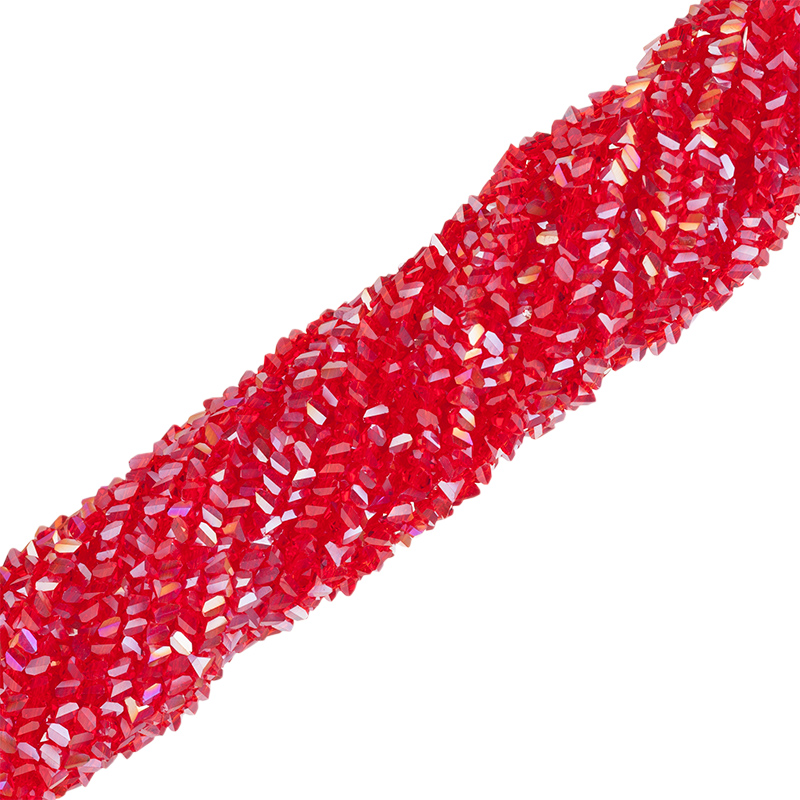 Бусины граненые абстрактной формы (треугольник), похожие на крошку. Материал: стекло, цвет: красный (прозрачный радужный). Размер: 2,5 х 3,5 мм, диаметр отверстия: 1 мм. Производство: Китай. Цена указана за нить 32-34 см (примерно 135 штук).