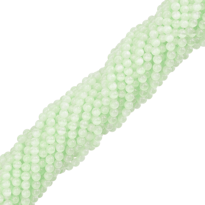 Круглые гладкие бусины с эффектом "кошачий глаз". Материал: синтетический камень. Цвет: зеленый. Размер: примерно 6 мм, диаметр отверстия: 0,5 мм. Производство: Китай. Цена указана за нить 37-38 см (примерно 60 штук).