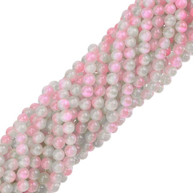 Круглые гладкие бусины с эффектом "кошачий глаз". Материал: синтетический камень. Цвет: серо-розовый. Размер: примерно 8 мм, диаметр отверстия: 0,5 мм. Производство: Китай. Цена указана за нить 37-38 см (примерно 50 бусин).