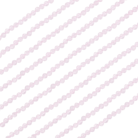 Бусины стеклянные граненые, круглой формы, имитация розового кварца. Материал: синтетический камень, цвет: полупрозрачный розовый. Размер: 3 мм, диаметр отверстия: 1 мм. Производство: Китай. Цена указана за нить 37-38 см (примерно 125 шт.).