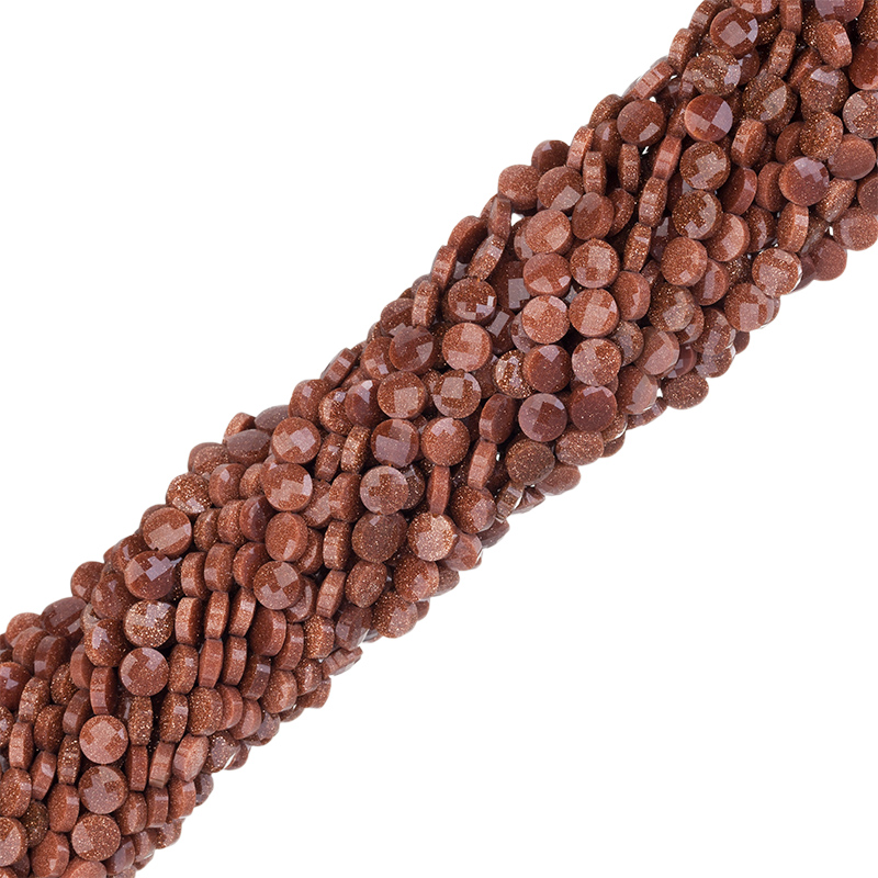 Бусины стеклянные в форме таблетки, имитация авантюрина. Цвет: непрозрачный коричневый (золотой песок). Размер: 6 x 3 мм, диаметр отверстия: 0,7 мм. Производство: Китай. Цена указана за нить 37-38 см (примерно 65 шт.).