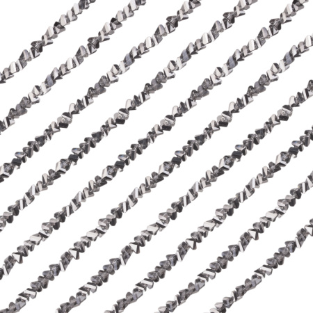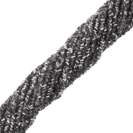 Бусины граненые абстрактной формы (треугольник), похожие на крошку. Материал: стекло с гальваническое покрытием, цвет: темное серебро (никель). Размер: примерно 3,5 х 4,5 x 4 мм, диаметр отверстия: 0,8 мм. Производство: Китай. Цена указана за нить 32-35 см (примерно 130-135 штук).