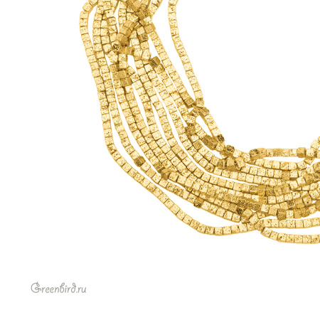 Бусины из геметина с гальваническим покрытием в форме кубиков. Бусины обладают неоднородной пористой структурой и могут незначительно различаться по размеру.