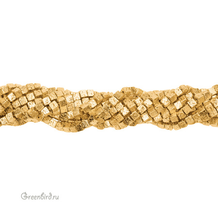 Бусины из геметина с гальваническим покрытием в форме кубиков. Бусины обладают неоднородной пористой структурой и могут незначительно различаться по размеру.