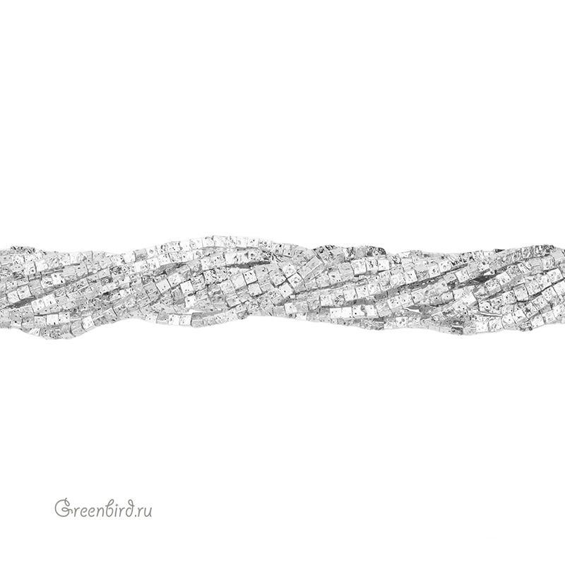 Бусины из геметина с гальваническим покрытием в форме кубиков. Бусины обладают неоднородной пористой структурой и могут незначительно различаться по размеру.