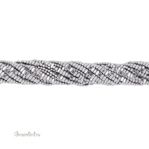 Из-за особенностей нанесения цветного металлизированного покрытия в нитях может присутствовать склеенность некоторых бусин, неоднородность и пористость покрытия в местах соприкосновения бусин, а также небольшие потертости.